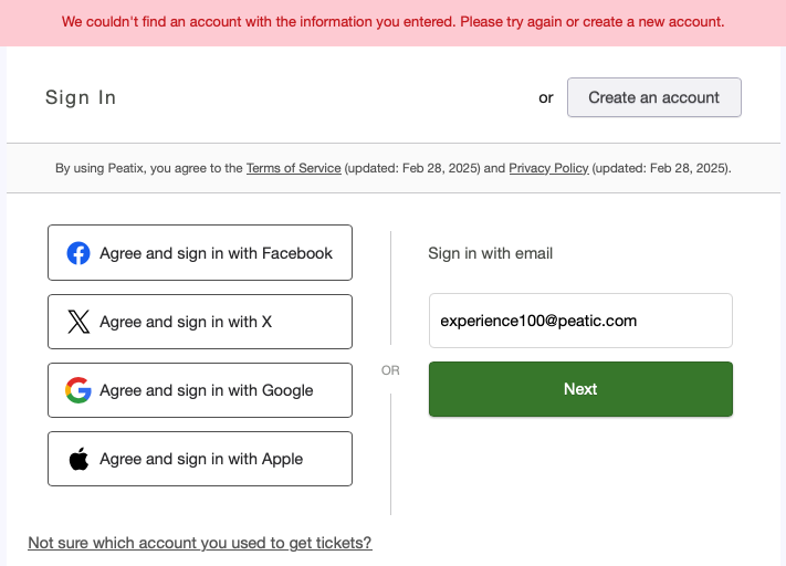 - I encountered "Looks like you already have a Peatix account that matches the email address used in your (external service) account." message