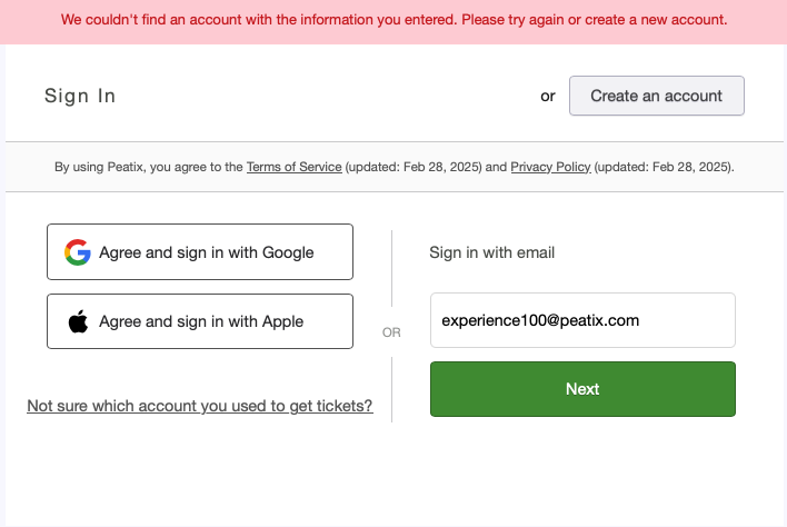 - I encountered "Looks like you already have a Peatix account that matches the email address used in your (external service) account." message