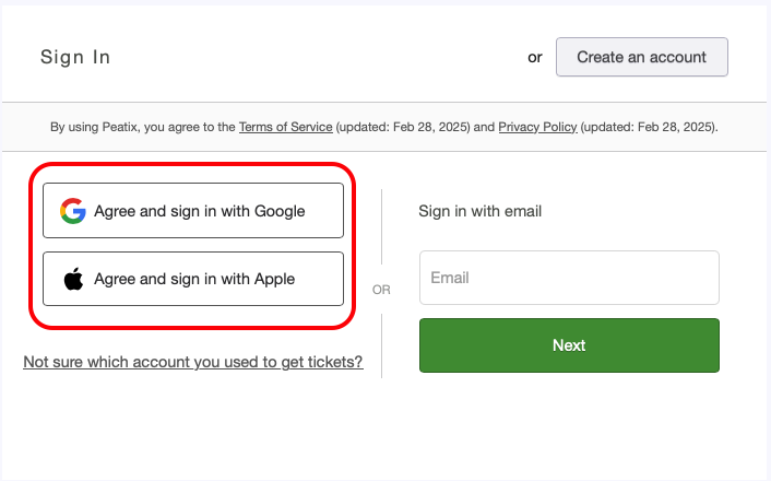*If you have not set a password, the password input field will not appear. When you click "Email me a sign in code", a sign in code will be sent to your Peatix-registered email address.